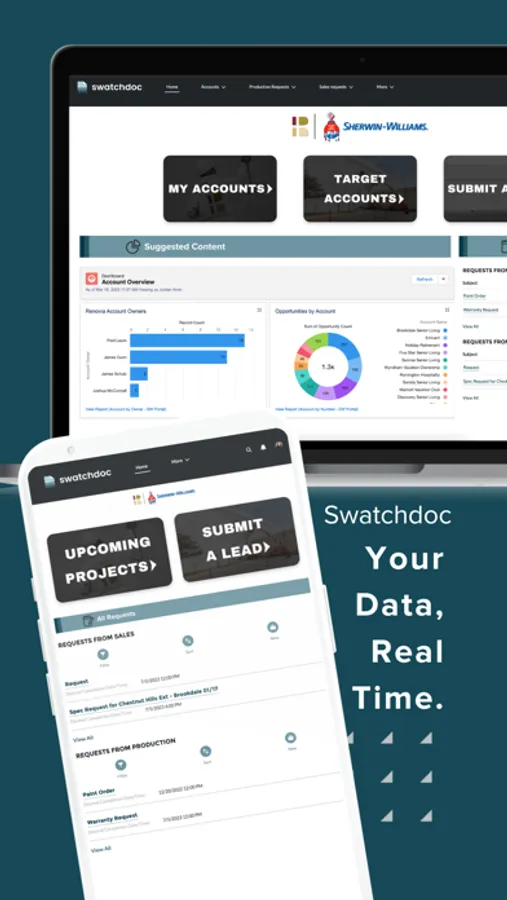 Through Swatchdoc: Partner, We are empowering partner relationships to, scale, and organize their work with Renovia. This dynamic platform offers Paint manufacturers real-time information related to every aspect of their relationship with Renovia's sales and production of paint projects.