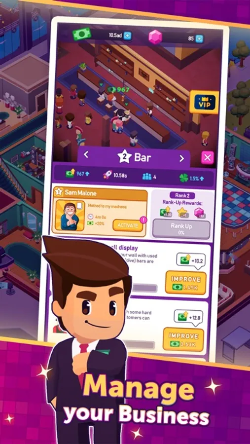 - Automate your nightclub to make more idle cash income: No need to tap like in an online clicker simulator! Enjoy this addicting tycoon simulation game and level up!