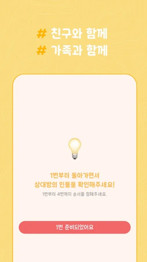 2. 순서를 따라 돌아가면서 핸드폰을 통해 상대방의 인물을 확인해주세요.