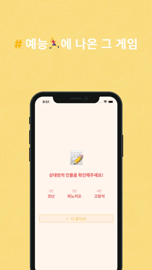 2. 순서를 따라 돌아가면서 핸드폰을 통해 상대방의 인물을 확인해주세요.