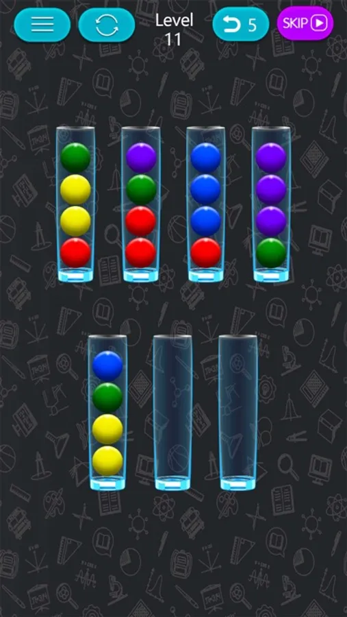 Just sort the balls of the same color into the same tube and complete it in the fewest steps!