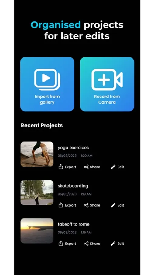 The app's user-friendly interface lets you effortlessly drag a timeline marker to control the speed of your videos. You can import videos from your camera roll or shoot directly within the app, making it easy to get started and create your masterpiece.