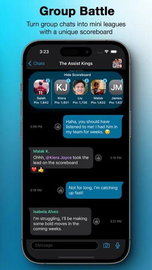 Scoreboard Showdown: Now, brace yourself for the innovation game-changer – group chats with a scoreboard twist. Transform any chat into a mini-league showdown and Witness your chatmates' rankings and scores.