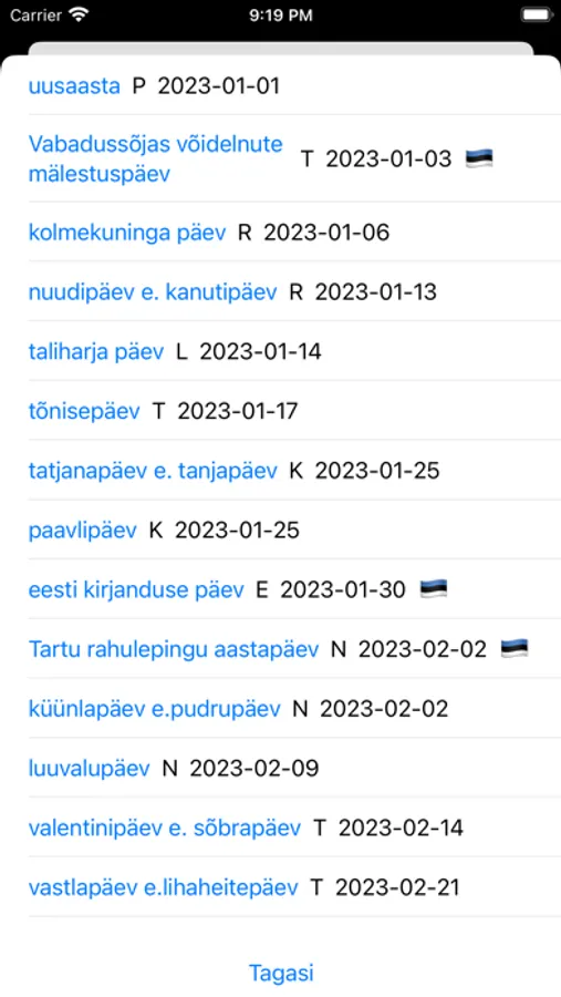 - isiklikke tähtpäevade lisamine, muutmine, kustutamine.