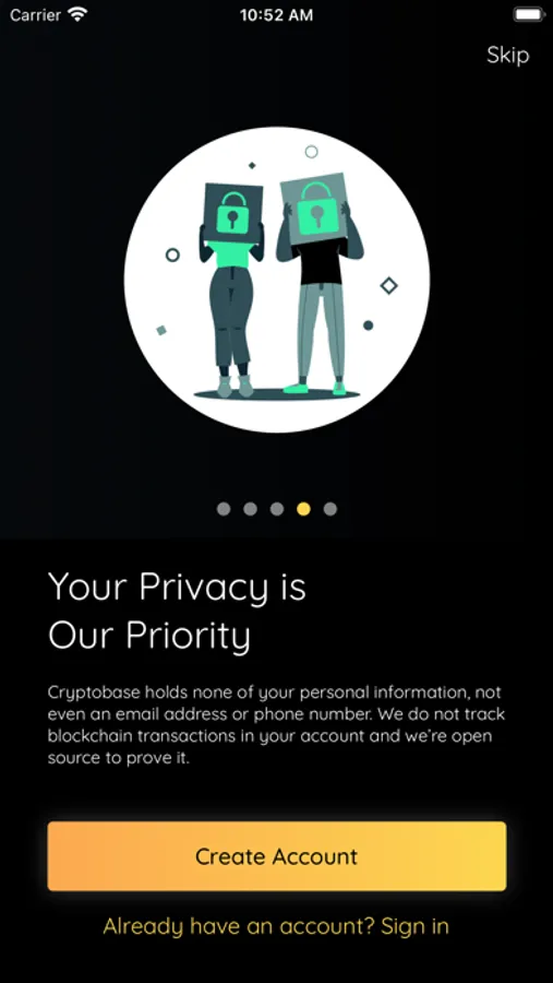 Take control of your funds! With Cryptobase, only YOU have access to your funds or transaction data. Neither Cryptobase or any 3rd party can access your money or data. You get the financial privacy and autonomy that blockchain was designed for, with the ease of use even grandma could handle.