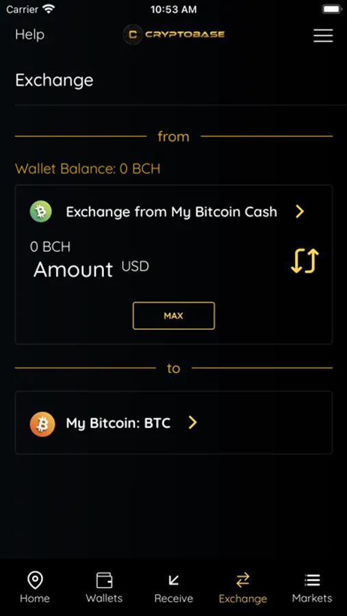 Cryptobase also provides a cryptocurrency exchange. Easily swap your currencies for others with a few taps.