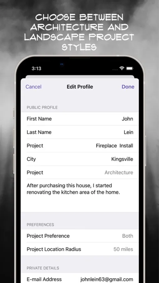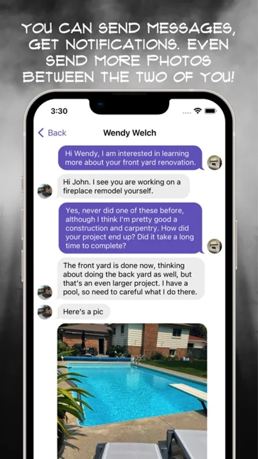 You’ll be able to upload photos of projects you've designed, built or installed for others to review. When two of you show similar interests, you can share private conversations about the project, send photos, gain valuable feedback.