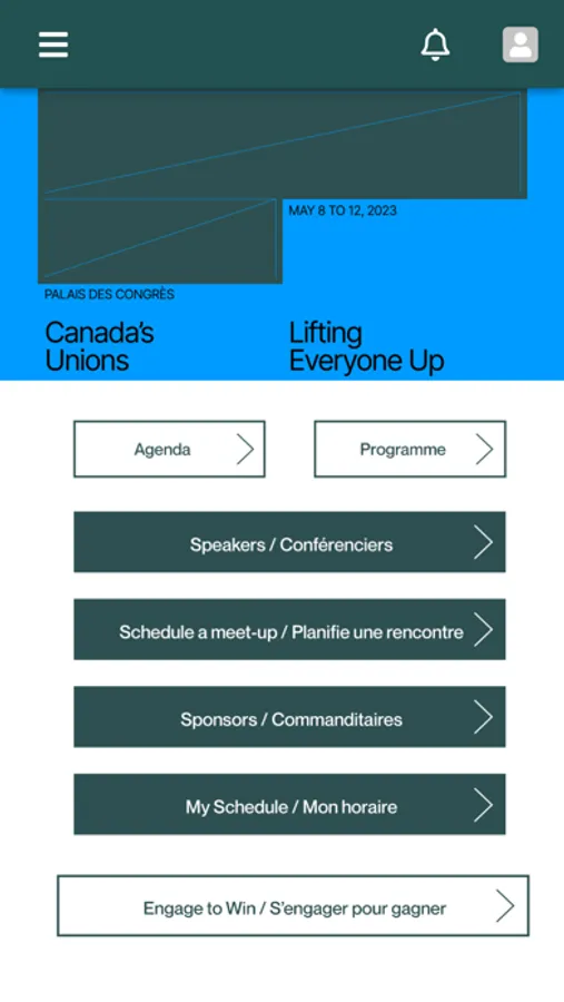 The Canadian Labour Congress (CLC) convention will be held May 8 to 12, 2023, at the Palais des Congrès de Montréal. This easy-to-use app lets you know what’s happening at the CLC Convention, and when. Using the app, you can: access the agenda; receive notifications about key convention events and updates; take part in activities and win points; connect with other participants; and more. Download the app now, and don’t miss out at the CLC Convention. When workers organize together, we lift everyone up. // L’Assemblée générale du Congrès du travail du Canada (CTC) aura lieu au Palais des congrès de Montréal du 8 au 12 mai 2023. Cette appli facile à utiliser vous permettra de savoir ce qui se passe pendant l’Assemblée du CTC et quand ça se passe. À l’aide de l’appli, vous pourrez : accéder à l’ordre du jour; recevoir des notifications au sujet d’événements importants et de mises à jour ayant trait à l’Assemblée; participer à des activités et gagner des points; communiquer avec d’autres participantes et participants; et faire plus encore. Téléchargez l’appli dès maintenant et ne manquez rien de l’Assemblée du CTC. Quand les travailleurs et travailleuses se mobilisent, nous nous élevons ensemble.