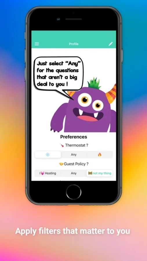 At RuumMe we offer a familiar matching experience that you can cater to your specific interests for the things that actually matter to you. Anything from thermostat preferences and guest policies to whether like luxury amenities or affordable values.