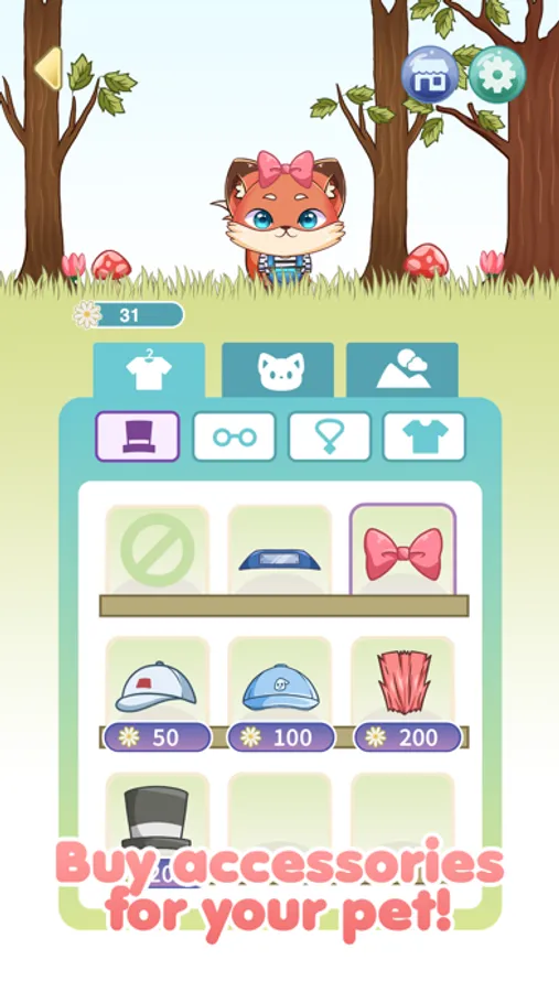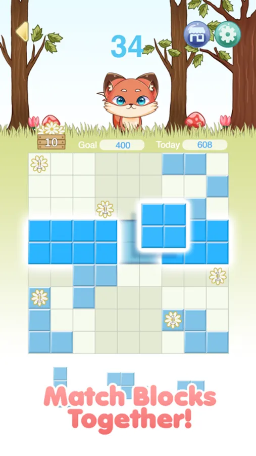 When you score combos, daisies appear on the board -- collect them by clearing lines. Once you have enough daisies, check out the in-game accessory shop and buy cool items to decorate your pet and your forest home!