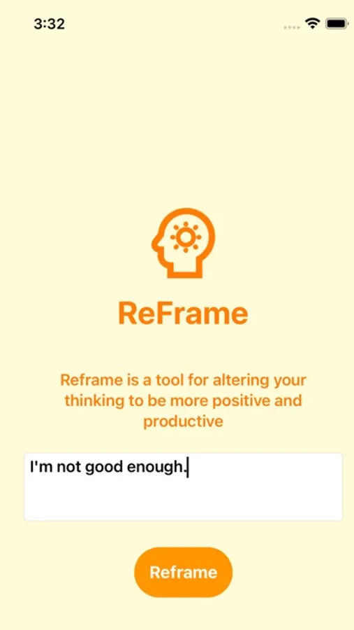 ReframeIt is an AI-powered app that helps you turn negative thoughts, problems, or situations into positive opportunities. Simply enter your negative thought, problem or situation, and ReframeIt will interpret it and reframe it in a more positive way, helping you to shift your mindset and transform your life. With ReframeIt, you can break free from negative thought patterns and build a more positive and resilient mindset.
