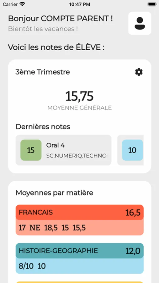 Élève ou parent, l'application vous permettra de vous connecter et de prendre conscience de vos moyennes ou de celles de vos enfants, parfois cachées sur l'application ÉcoleDirecte classique.