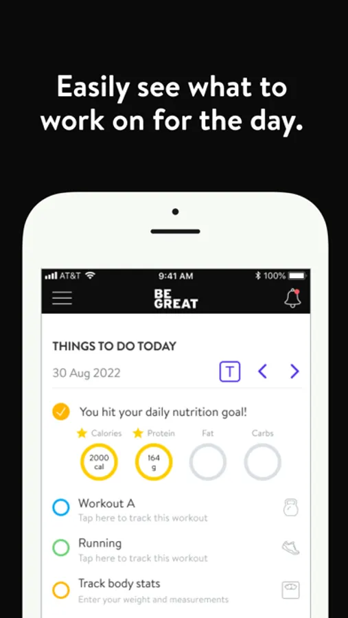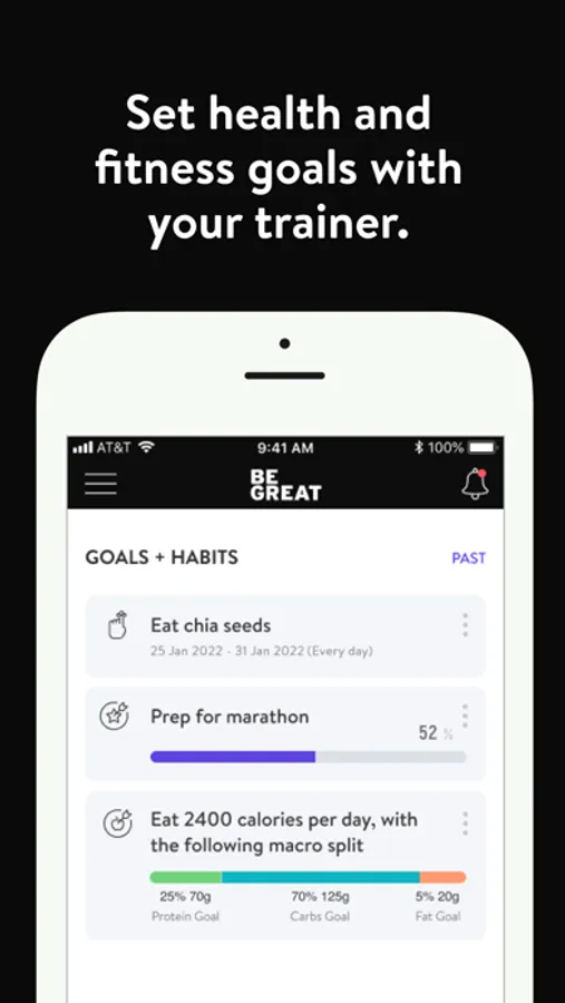 With the BEGREAT+ App, you will have access to workout programs designed specifically to help you reach your fitness and health goals! You can follow & track your workouts, your nutrition, your lifestyle habits, measurements and results–all with the help of your coach.