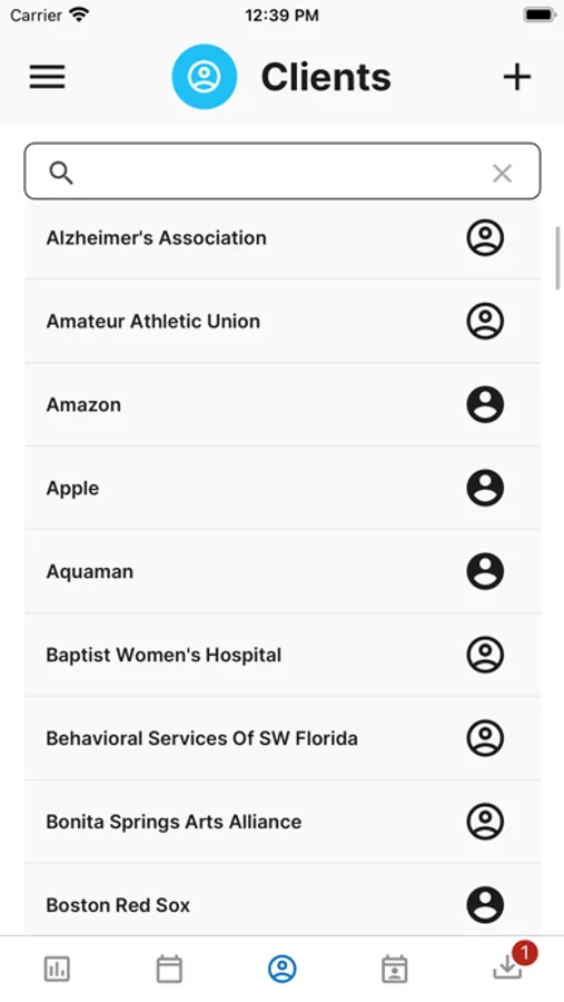 A detailed client list allows users to search for any client or contact person in their database, and even tap to contact those customers via phone or email. Users with permission can edit customer details from right within the app – including adding new clients or contact people.
