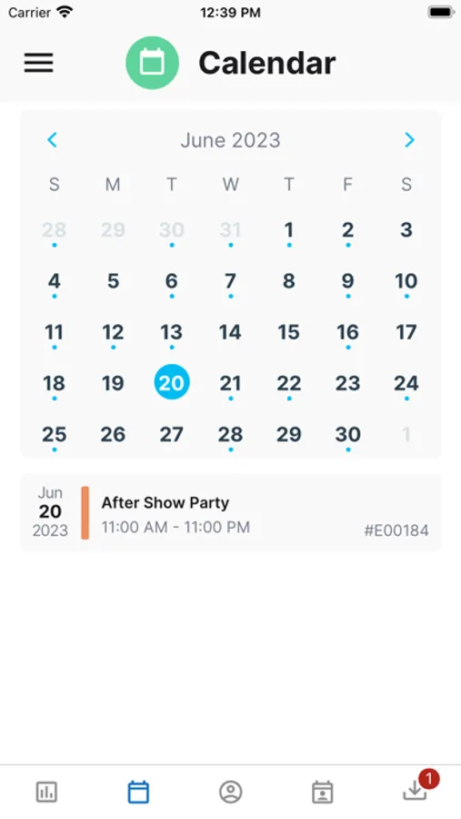 A graphic calendar display allows users to see which dates have events, and drill down into each event for more information – including venue details, specific menu items and scheduled staff.