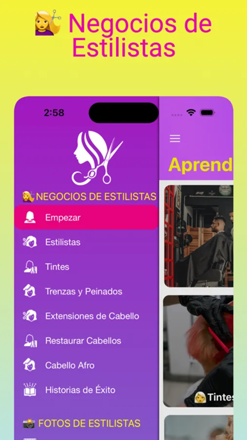 Nuestra aplicación de Negocios de Estilistas es perfecta para aquellos que desean empezar un negocio de belleza o para los que ya tienen uno y quieren llevarlo al siguiente nivel. Con una amplia gama de cursos disponibles, incluyendo estilismo, peluquería, tintes, peinados y cuidados de cabello, nuestros usuarios tendrán todas las herramientas necesarias para tener éxito en la industria de la belleza.