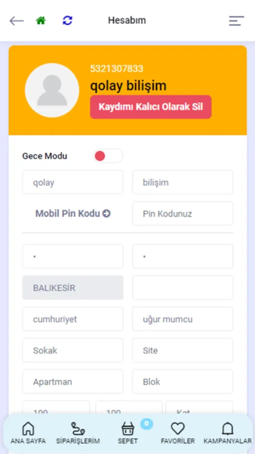 Online olarak sipariş verebilmenize, Sipariş detayı ve Tekrarlana bilmesi, Kişisel verilerinizi yönetebilmeniz, Farklı ödeme kanalları ile ödeme işlemlerinizi yapabilmenizi sağlamaktadır.