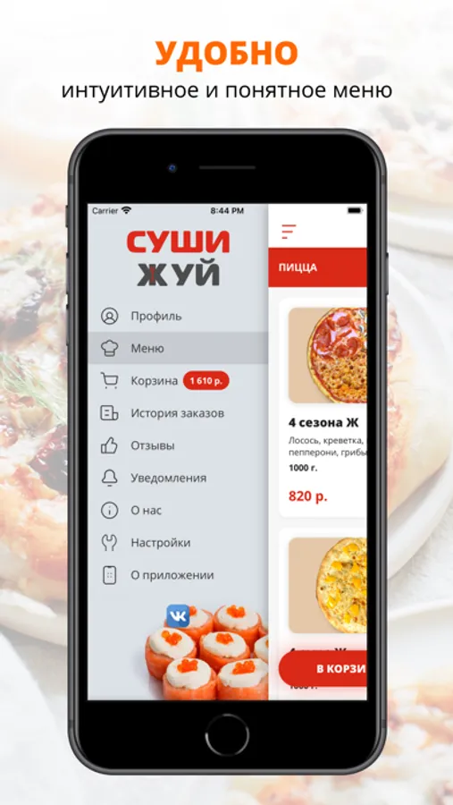 Скачивайте наше приложение, оформляйте заказ и наслаждайтесь любимой едой, где бы Вы ни были! Приятного аппетита!
