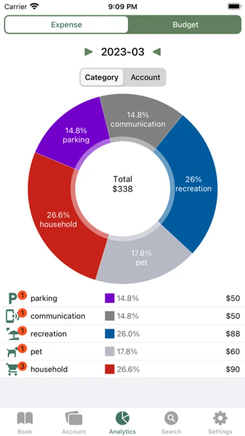 expenditure analysis: provide expenditure analysis data within the set date range. Where does every penny go?spending for who? Which account was spent? It's all clearly arranged.
