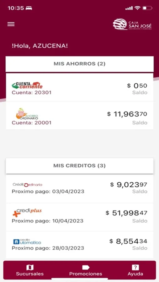 Aplicación para consulta de Saldos y movimientos de Ahorros y Prestamos para socios con cuentas activas.