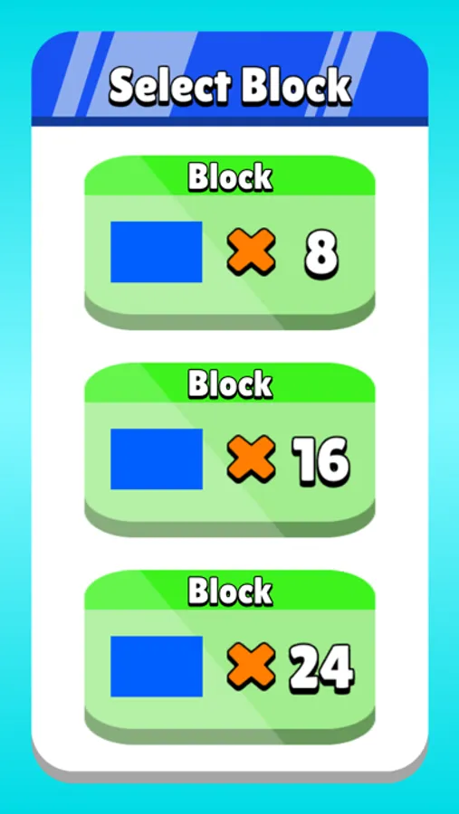 ブロック数は8個、16個、24個から選べて、ブロックの形や移動スピードが違うステージがある。