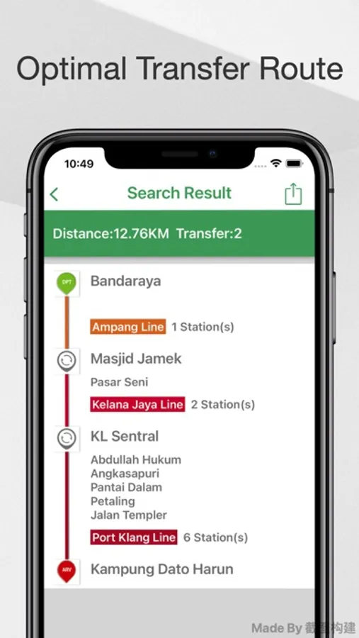 Choose departure and arrival to get multiple transfer options. Includes: route, time, fare, distance.