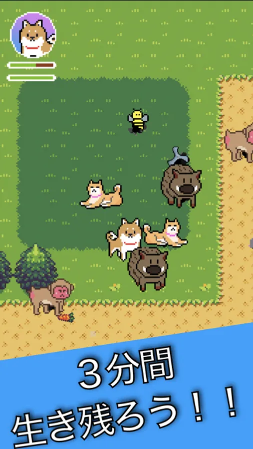 柴犬が主人公の3分間限定サバイバル2Dアクションゲーム!