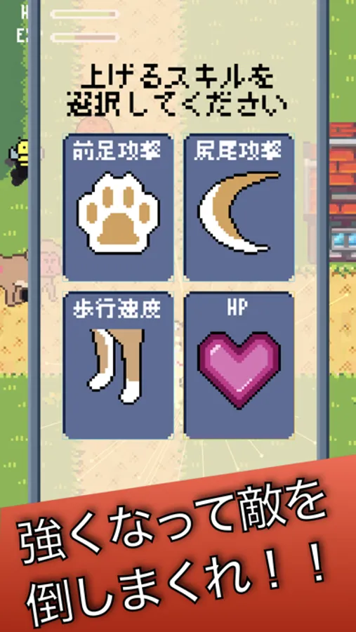 経験値を貯めて前足攻撃と尻尾攻撃をレベルアップ!
