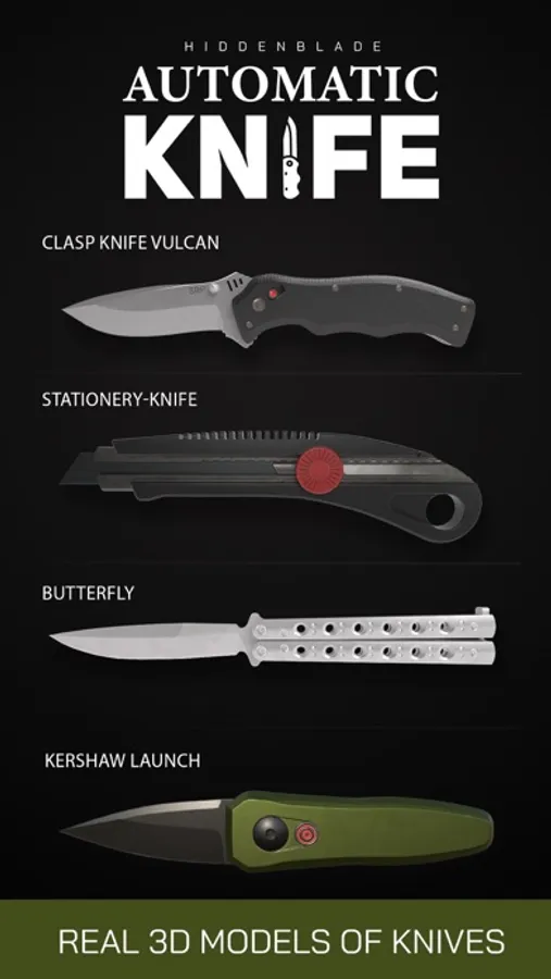 An excellent collection of automatic knives is waiting for you in your device. There are 16 types of 3D knives available in the game.