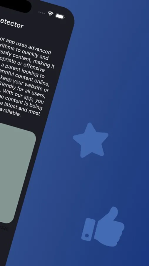 Our AI content detector app uses advanced machine learning algorithms to quickly and accurately identify and classify content, making it easy to filter out inappropriate or offensive material. Whether you're a parent looking to protect your children from harmful content online, or a business owner trying to keep your website or social media pages safe and friendly for all users, our app is the perfect solution. With our app, you can rest assured that your online content is being monitored and moderated by the latest and most advanced AI technology available.