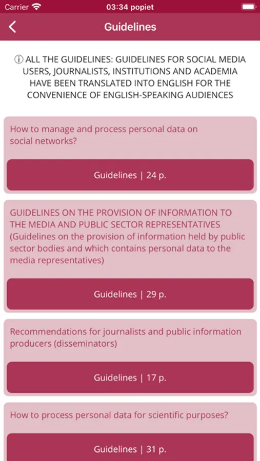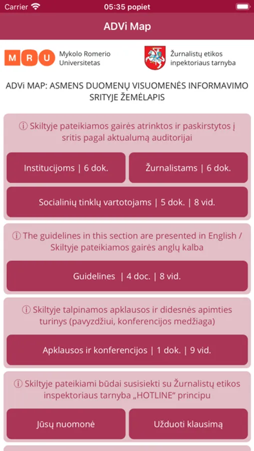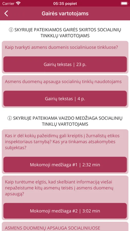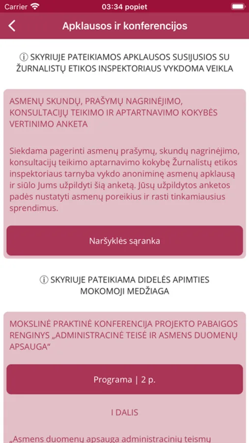 Mobiliosios aplikacijos vartotojai turi galimybę gauti aktualią informaciją apie asmens duomenų apsaugą, kurią skelbia Žurnalistų etikos inspektoriaus tarnyba.