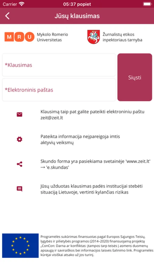 Programėlės sukūrimas finansuotas pagal Europos Sąjungos Teisių, lygybės ir pilietybės programos (2014–2020) finansuojamą projektą „ConCon: Darna ar konfliktas: įtampos tarp teisės į asmens duomenų apsaugos ir saviraiškos bei informacijos laisvės šalinimo link. Programėlės kūrėjai visiškai atsako už jos turinį. Europos Komisija neprisiima jokios atsakomybės dėl poveikio kurį gali sukelti čia pateikta informacija.