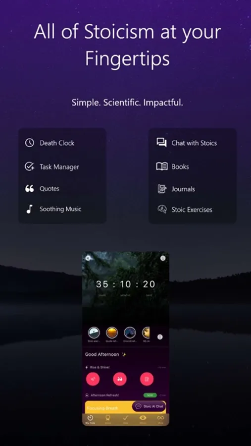Memento Mori is your stoic way to calm the mind, build an unshakeable mindset, and improve positive perspective. You can write diary and journal, track goals, manage tasks, read stoic books and quotes, meditate with breathing exercises and do stoic mindset exercises. All this with inspiring scenery and music will lead to your mental wellbeing.