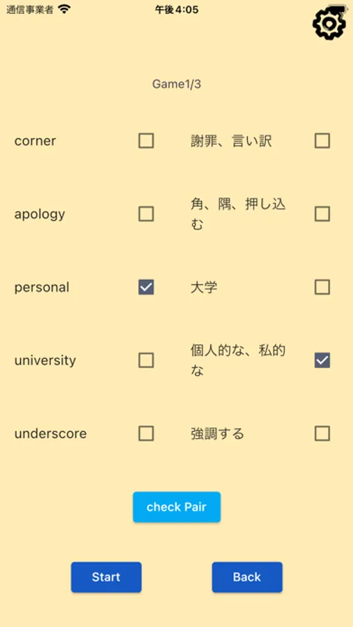 WordPairは左右の単語を組み合わせて消していくアプリです。