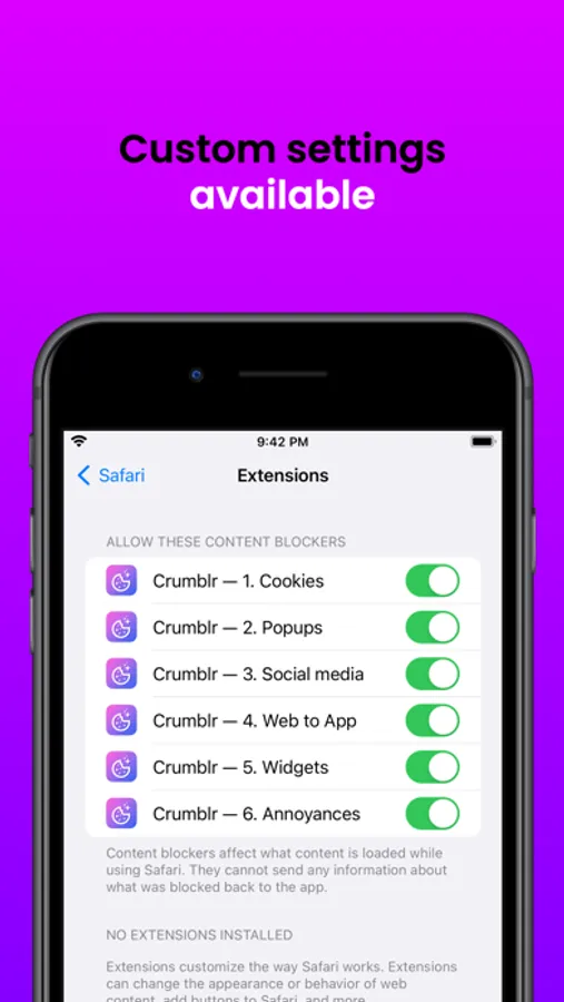 Crumblr is a nuisance blocker/remover for iPhone & iPad. Wether that is: cookie banners, popups, widgets and more.