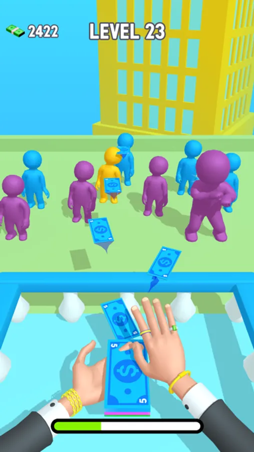 Collect moneys and count them to become millionaire! Buy yourself accessories to show off your wealth. Donate the money you collect to the people and make the people love you!