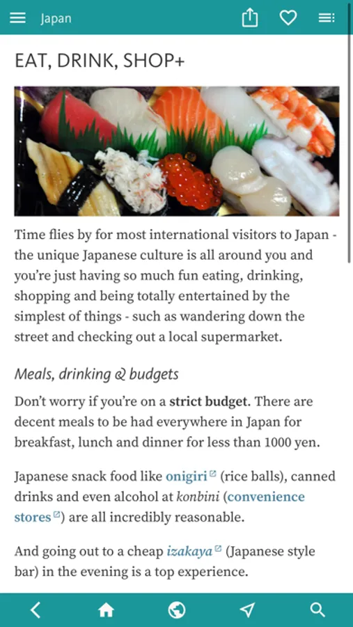 Finally, the app provides useful general advice on RESTAURANTS & JAPANESE FOOD; DRINKING & NIGHTLIFE; ENTERTAINMENT & SHOPPING to make sure your bags are bulging when you leave!