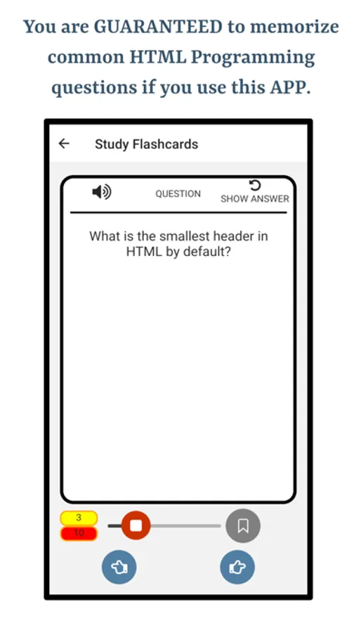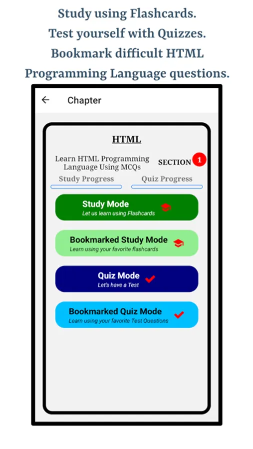 This app is a great resource to learn about HTML Programming Language. The app is engineered to make users perfect understanding common HTML Programming Language questions by studying for a very short amount of time. Audio functionality and bookmarking is available throughout the app on chapter, section, study mode and quiz modes.