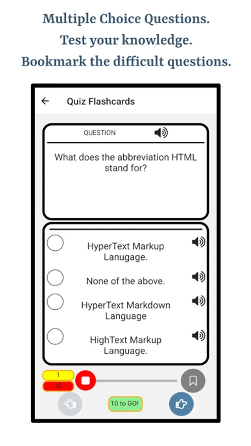 The app will help you learn the correct pronunciation of terminologies used in HTML Programming Language using English language. Following are the main features of this app