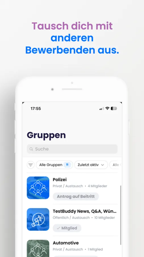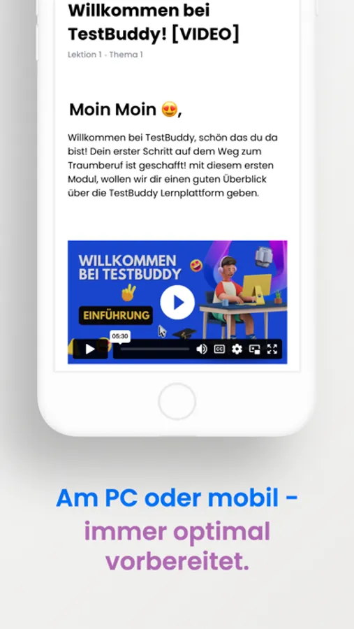 Mit TestBuddy hast du Zugang zu tausenden Übungsaufgaben mit Lösungswegen und Hinweisen. Hierzu haben wir eine umfangreiche, nutzerfreundliche und interaktive E-Learning Plattform für eine optimale Vorbereitung auf deinen Berufseinstieg geschaffen.