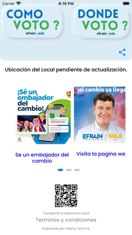 Innovadora herramienta que permite consultar tu local de votación y compartir la ubicación de la misma.