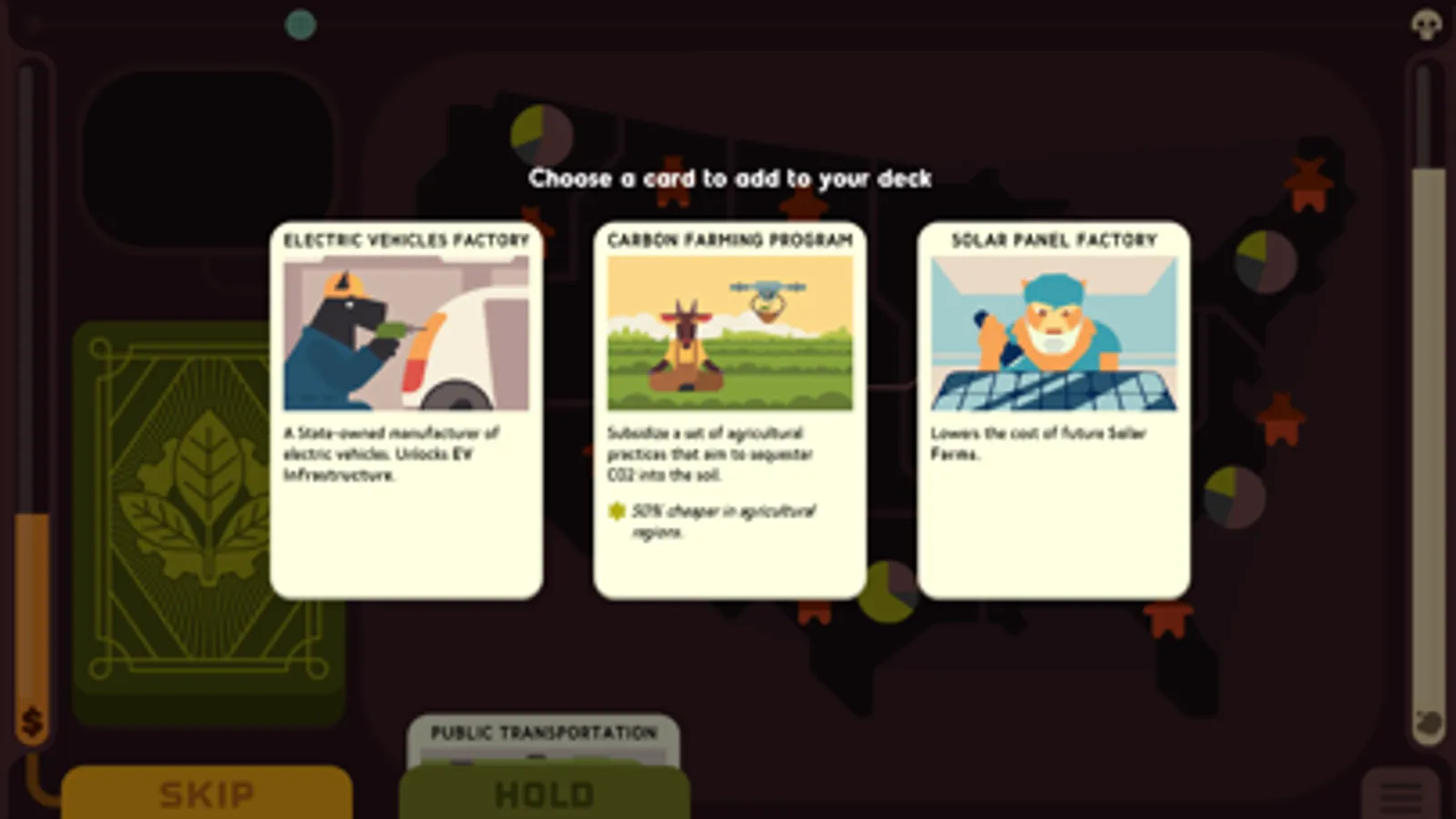 The Green New Deal Simulator is a tiny deck-building game about the biggest challenge of our time: climate change. Your goal is to transition the United States to a post-carbon economy while ensuring full employment.