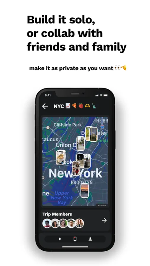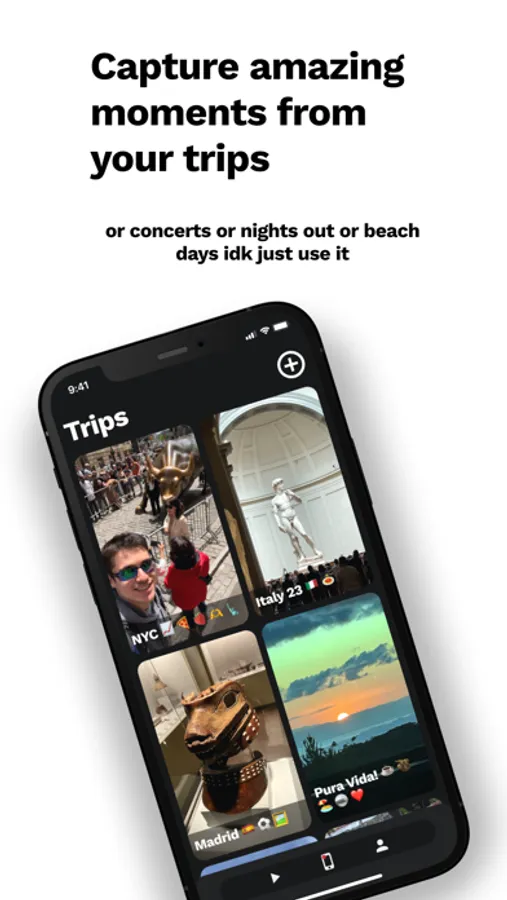 Capture unforgettable travel memories with Trippin. Invite your friends to add short videos to the shared trip story. Everyone contributes their unique perspective and highlights their favorite moments of the trip. Replay all the memories with one tap.