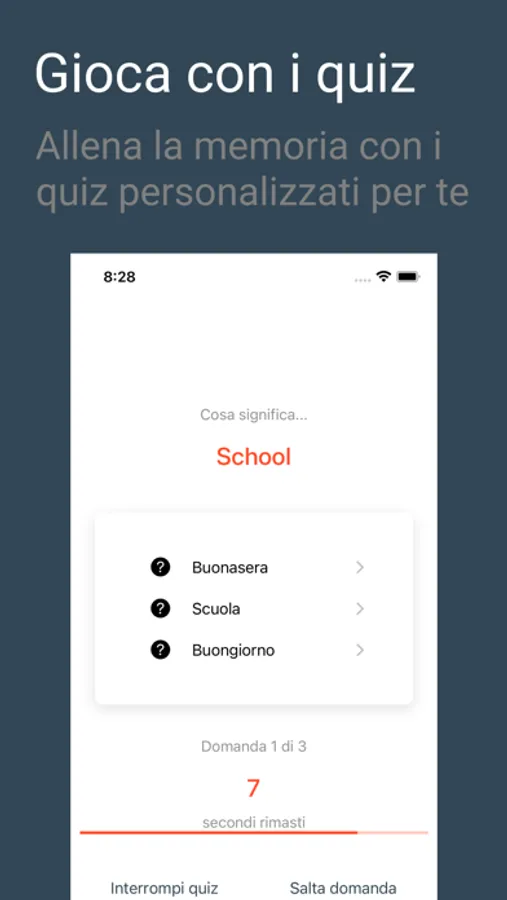 -Quiz personalizzati di vario genere per allenare la memoria e migliorare il tuo vocabolario.