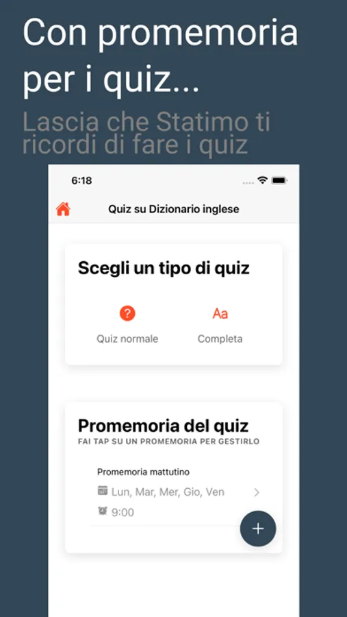 L'app ti aiuta ad allenare la memoria tramite quiz personalizzati creati in base al tuo vocabolario salvato. L'esperienza di apprendimento è arricchita dalla possibilità di creare anche dei promemoria personalizzati, che ti aiuteranno a rimanere motivato e a memorizzare i nuovi vocaboli in modo divertente e coinvolgente.