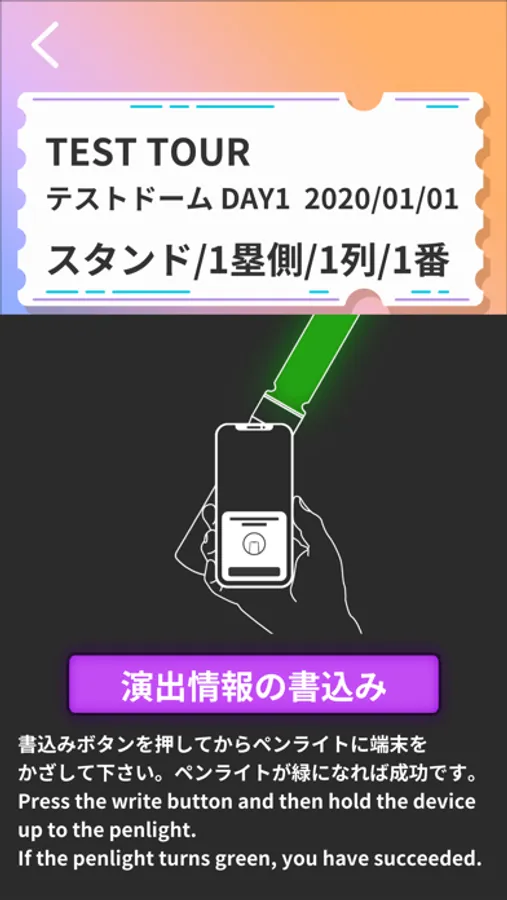 PenlightLinkはご使用のライトを会場内で無線コントロールする為の演出情報を書込むアプリです。