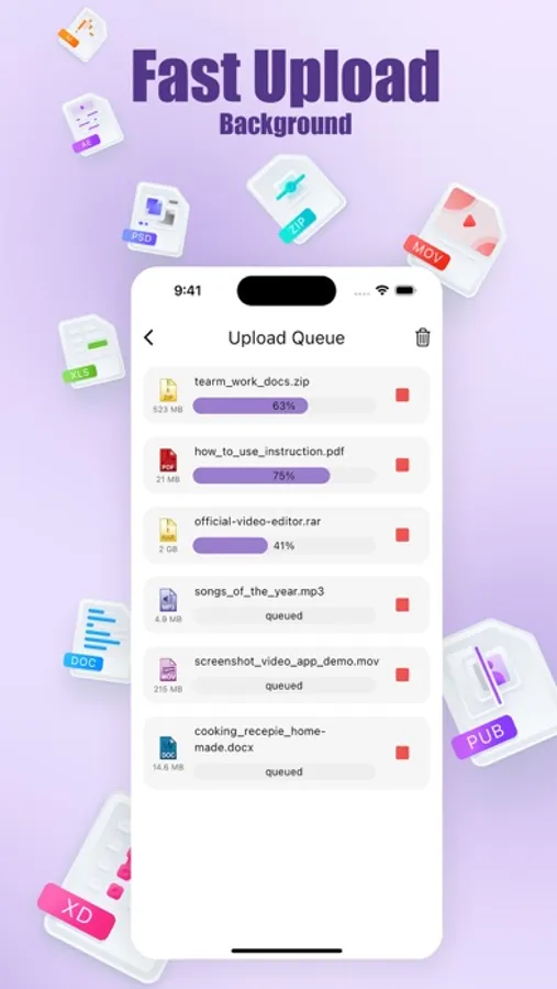Support all file types for example upload ZIP, PDF, RAR, MOV, MP4, MKV, any file types you have.