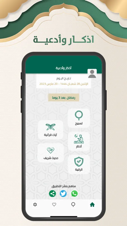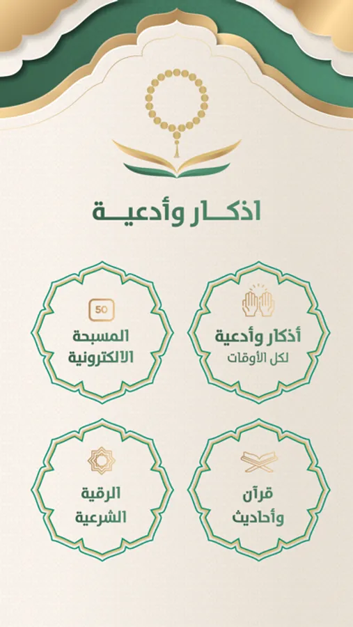 تطبيق أذكار وأدعية - تطبيق مجاني وبدون إعلانات - ويحتوي على: