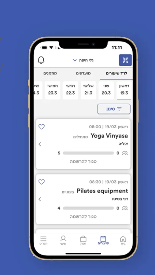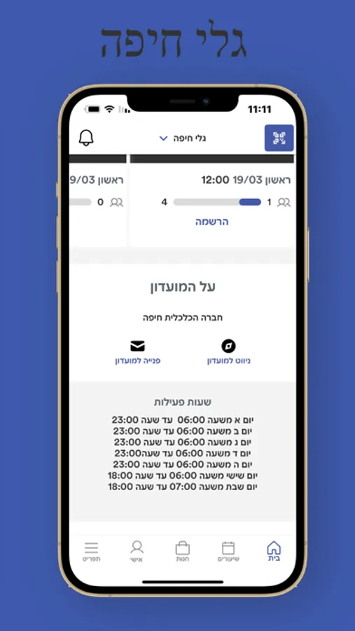 ישירה למועדון, הצגת מערכת השעורים במועדון, ניווט למועדון, הצגת מבצעים