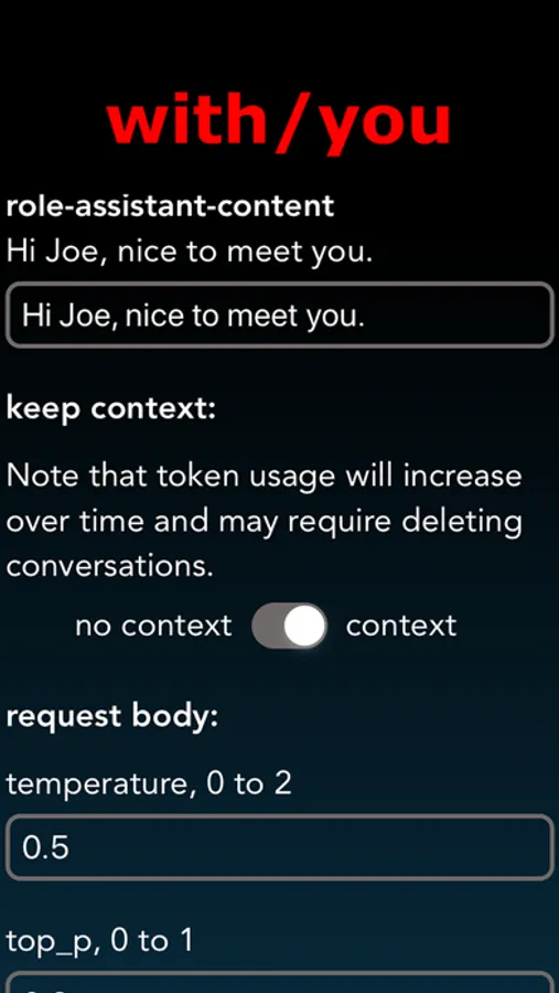 - role-system-content: describes what kind of assistant do you want to interact with. The default try to provide a natural interaction (Italian assistant from Florence).